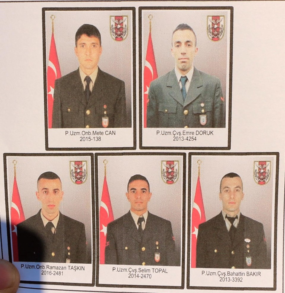 Şehit Piyade Uzman Çavuş Emre Doruk, Piyade Uzman Onbaşı Ramazan Taşkın, Piyade Uzman Çavuş Bahattin Bakır, Piyade Uzman Onbaşı Mete Can ve Piyade Uzman Çavuş Selim Topal'ın Türk bayraklarına sarılı naaşları, Gaziantep Adli Tıp Kurumu'ndan askerler tarafından alındı.