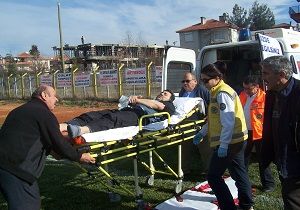 Şeref Kızılkaya ambulansla getirildiği Korkuteli 100. Yıl Atatürk Stadyumu’ndan Sağlık Bakanlığının 112 Hava ambulansı ile alınarak Antalya’ya götürüldü.