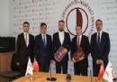 Kanbay, Eroğlu’na 15 Temmuz darbe girişiminde bombalanan TBMM’nin yıkılan duvarlarından bir parçayı içeren anı kartını takdim etti.