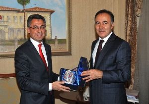 Ziyarette Valilik Şeref Defterini imzalayan AFAD Başkanı Fuat Oktay Vali Altıparmak’a hediye takdim etti.