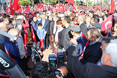 Mitinge Antalya Valisi Münir Karalıoğlu, Antalya Cumhurriyet Başsavcısı Ramazan Solmaz Antalya İl Emniyet Müdürü Celal Uzunkaya, AK Parti Millet Vekili Mustafa Köse, CHP Antalya Millet Vekili Devrim Kök, Akdeniz Üniversitesi Rektörü Prf.Dr Mustafa Ünal, Ak Parti İl Başkanı Rıza Sümer, CHP İl Başkanı Mustafa Erdem,MHP İl başkanı Mustafa Aksoy, Konyaaltı Kaymakamı İbrahim Keklik; Muratpaşa Belediye Başkan yardımcısı İbrahim Cephaneci, Döşemealtı Belediye Başkanı Turgay Genç,Büyük Şehir Belediyesi genel sekreteri Birol Ekici,İl Müftüsü Osman Altan, Antalya Askeri Erkan Üstdüzey temsilcileri, Antalya Ticaret Borsa Başkanı Ali Çandır, Sivil Toplum kuruluşu temsilcileri AK Parti, MHP, CHP il ve ilçe yöneticileri ve binlerce Antalyalının katılımı ile gerçekleşti.