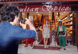 Side Sultan Baharat ortaklarından Ayhan Ertekin, dükkanlarına gelen turistleri Türk ve Osmanlı müziği eşliğinde karşıladıklarını belirtti. Ertekin, 2 yeniçeri askeri giyimli kişinin de saat 19.00'dan gece işyeri kapanıncaya kadar işyerinde beklediklerini ifade etti. Dükkan önündeki Osmanlı askeri giyimli kişinin turistlerin büyük ilgisini çektiğini belirten Ayhan Ertekin, yabancı misafirlerin alışveriş yapmasa da yeniçerilerle hatıra fotoğrafı çektirdiklerini söyledi. Turistlere, ortağı Süleyman Özgümüş ile birlikte İngilizce, Almanca ve Rusça bilgilendirme yaptıklarını kaydeden Ertekin, "Dükkan önüne bekleyen 2 yeniçeri askeri giyimli arkadaşımız turistlerin ilgisini çekiyor. Amacımız dükkana müşteri çekme yönteminde farklılık oluşturmak. Bunun yanında bize ait kültürel değerlerimizi yabancı konuklara güzel bir şekilde anlatmak. Turistlerin Türk müziği hakkında bilgi alması bile ülkemiz adına büyük tanıtım." diye konuştu.