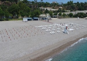soyunma kabinlerine kadar kapsamlı bir bakım-onarım gerçekleştirdi. Varyanttan başlayarak Konyaaltı Beachpark ve Akdeniz Bulvarı hattı boyunca peyzaj revizyonları yapıldı. Bu kapsamda halkın ücretsiz olarak faydalandığı kısımda sahile sabitlenen ahşapların etrafı halatlarla sarılarak 9 metrekarelik özel alanlar oluşturuldu. Bu kısma vatandaş şemsiye ya da havlusunu gönül rahatlığıyla getirebilecek. Şezlong kullanmak isteyen vatandaşlara da 3’lü, 2’li veya tekli seçenekler sunulacak. Şezlonglar görevliler tarafından sık sık dezenfekte edilecek. Dezenfekte işleminin ardından 20 dakika bekletilen şezlonga yeni bir tatilci alınacak. Plaja gelen her tatilcinin ellerine dezenfektan sıkılıp, maske verilecek. Tuvaletlere sensörlü aydınlatmalar, fotoselli musluklar ve temassız sabunluklar yer alacak. Çoklu duş ünitelerinin yerine tekli duş üniteleri kullanılacak.