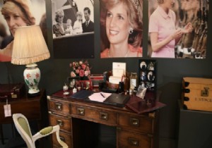 Galler Prensesi Diana'nın Kensington Sarayı'ndaki odasında çalıştığı, kitap okuduğu ve resmi yazışmalarını yaptığı masa, serginin en önemli parçaları arasında yer alıyor. Diana'nın müzik tutkusunu anlatan, aralarında Diana Ross, Lionel Richie ve Elton John'un albümlerinin de olduğu kaset koleksiyonu da, ziyaretçilere sunulacak.