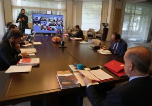 | Cumhurbaşkanı ve AK Parti Genel Başkanı Recep Tayyip Erdoğan, video konferans yöntemiyle gerçekleştirilen AK Parti Merkez Yürütme Kurulu (MYK) toplantısında konuştu. |