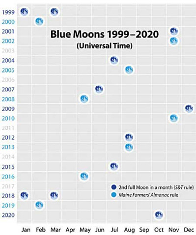 Gökbilimcilerin tahminlerine göre bir dahaki Mavi Ay’ın 2018 ve 2020 yıllarında yaşanması bekleniyor.