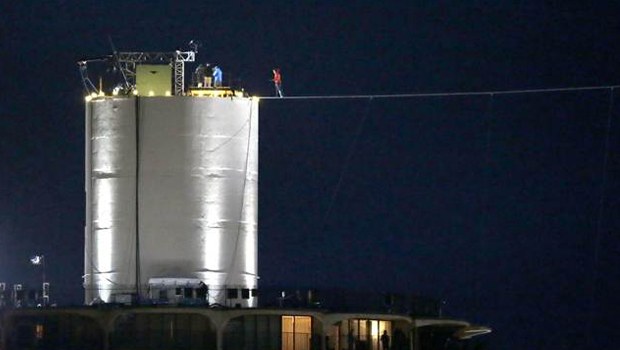 35 yaşındaki Wallenda, milyonlarca kişinin nefeslerini tutarak izlediği gösterisini hiçbir güvenlik önlemi olmadan gerçekleştirdi. Wallenda'nın düşme olasılığına karşı televizyon canlı yayınında görüntüler, 10 saniye gecikmeli olarak verildi.