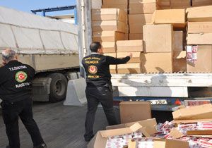 Suriye'den gelen 35 BCJ 80 ve 31 R 1067 plakalı TIR'ların gümrüğe kireç yüklü olduğunu beyan etmesi üzerine Gümrük Muhafaza Müdürlüğüne bağlı Kaçakçılık ve İstihbarat ekipleri, aracı dedektör köpek Alf ile kontrol etti. Toros adlı operasyonda, köpeğin tepki vermesi üzerine yapılan kontrolde aracın tıka basa sigarayla dolu olduğu görüldü. Araçta 515 bin paket 2 milyon 500 bin TL değerinde kaçak sigara ele geçirildi.