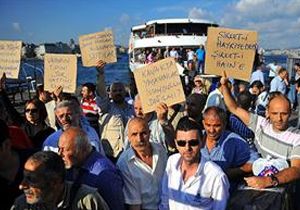 Eminönü'ndeki Boğaz İskelesi'nde toplanan bir grup, halk arasında "direkt vapur" ismiyle anılan ve 87 yıldır hizmette olan Eminönü-Sarıyer vapur seferlerinin kaldırılmasına ilişkin kararı, "UCLG'ye başkan oldu, İstanbul'u unuttu" ve "Vapurun tipini sor, hattını kaldır" yazılı pankartlarla protesto etti.