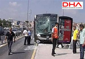Metrobüs duraktaki reklam panosuna çarparak durabildi. Kazada yaralanan olmazken araçta hasar oluştu.
