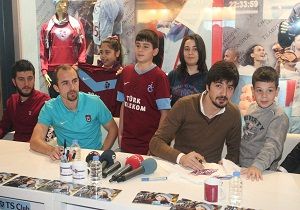 Trabzonspor takım kaptanı Tolga Zengin ve Polonyalı oyuncu Adrian Mierzejewski, TS Club'da düzenlenen imza gününde taraftarlarla buluşarak lisanslı ürünleri imzaladılar.