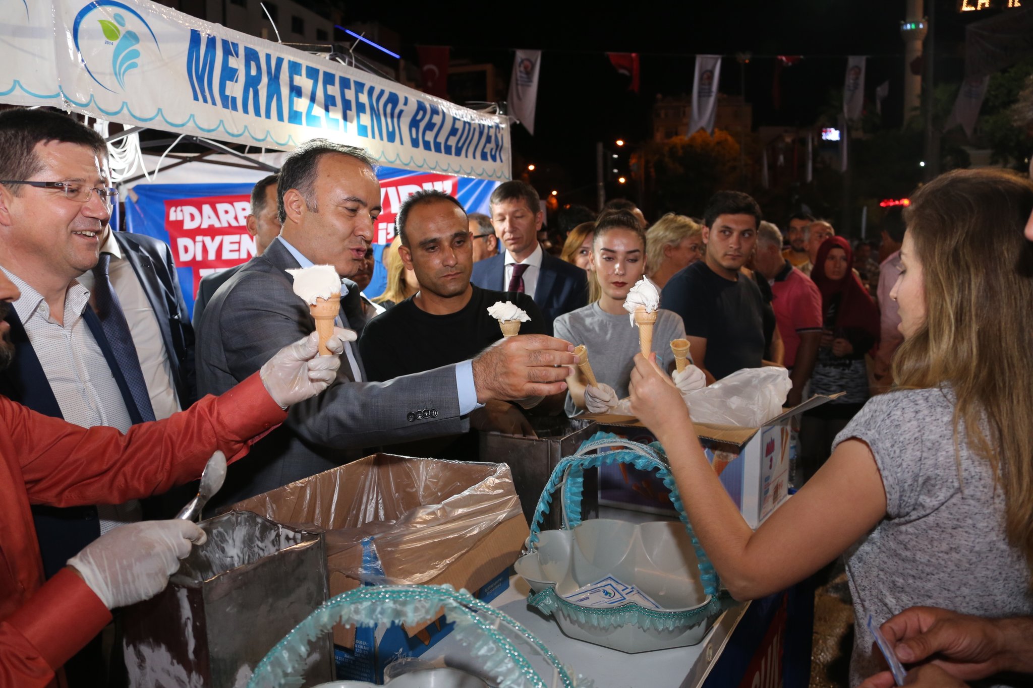 Ekonomi Bakanı Nihat Zeybekçi'nin de katıldığı demokrasi nöbetinde Denizli Valisi Ahmet Altıparmak vatandaşlara dondurma ikram etti.